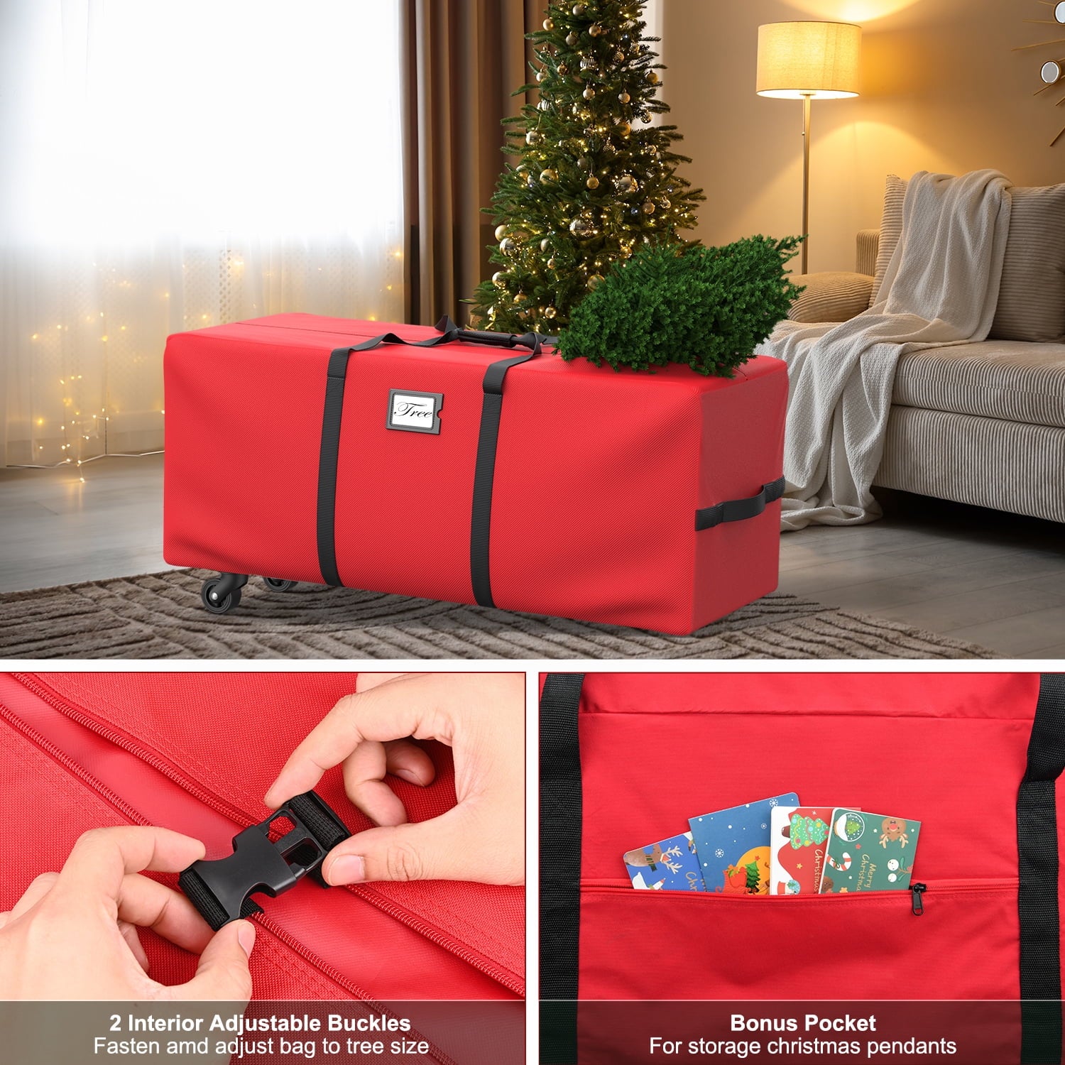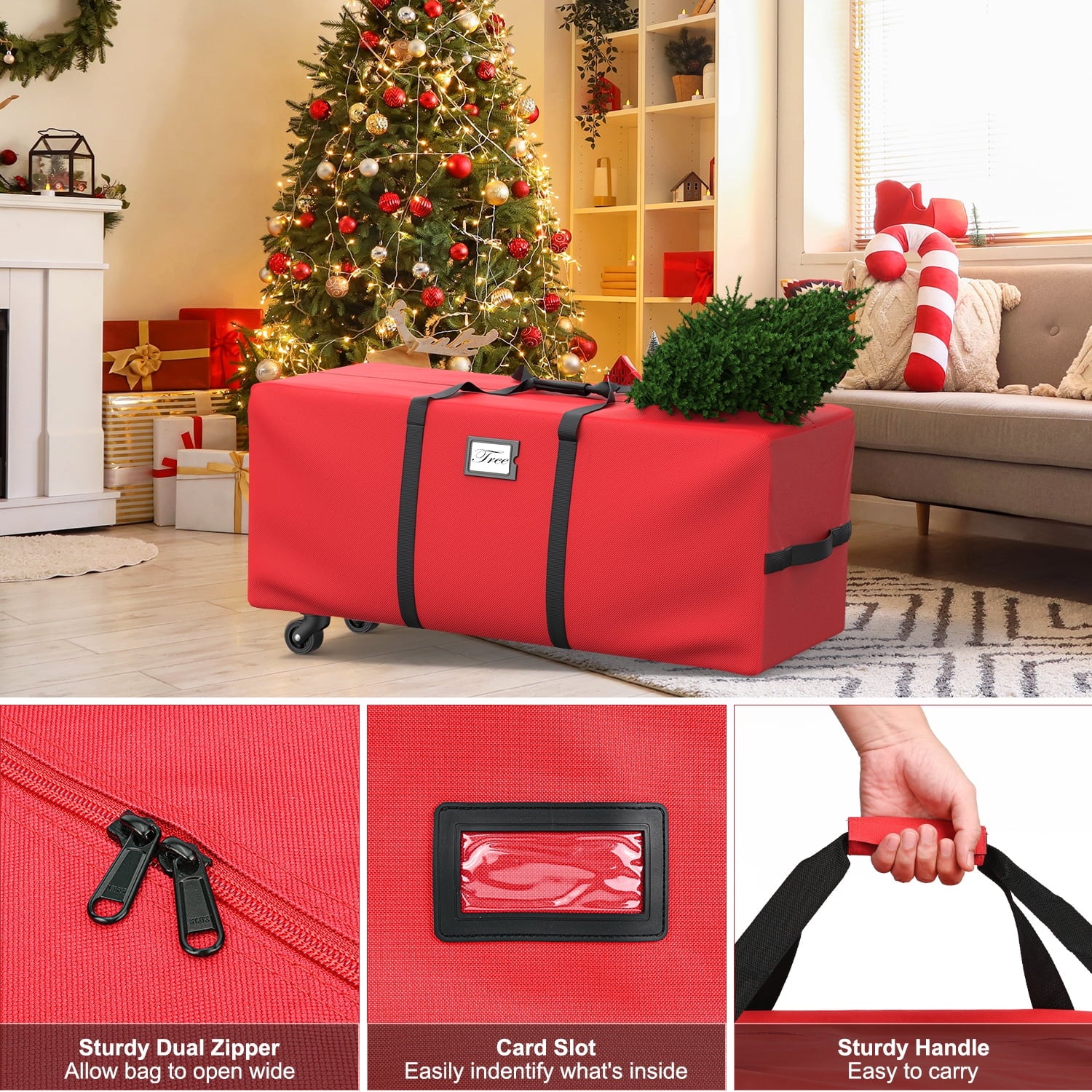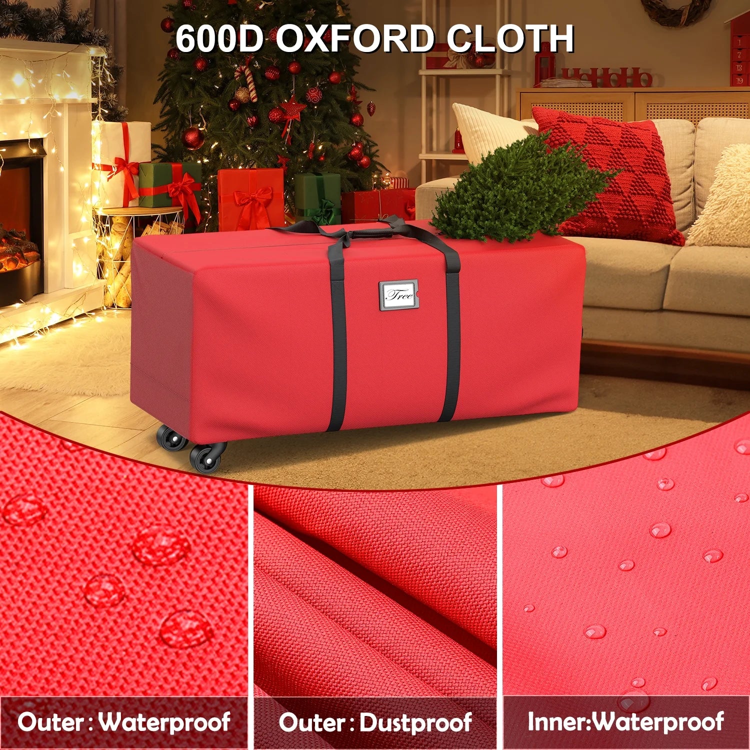 7.5 f Rolling Christmas Tree Storage Bag with Wheels, Waterproof Xmas Tree Storage Container Box 600D, Re