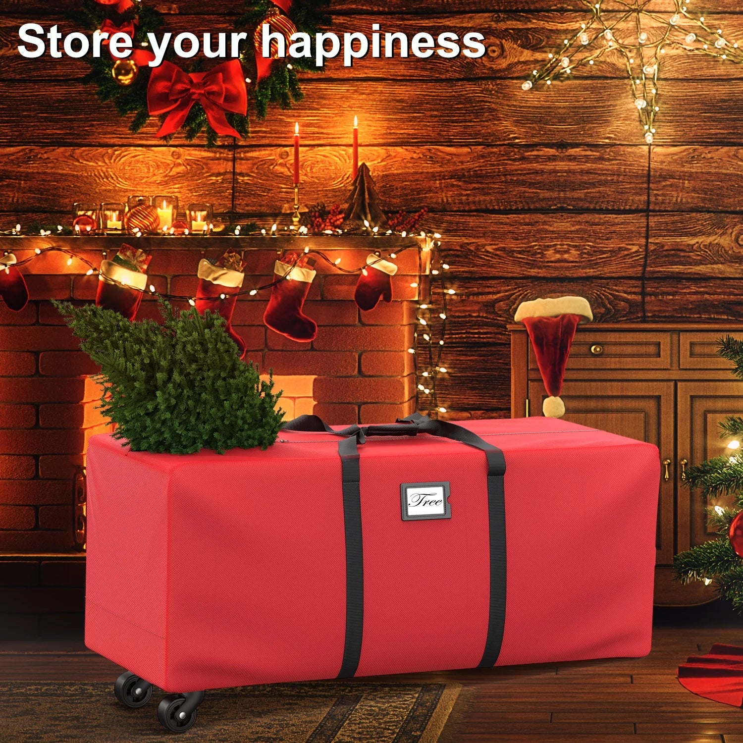 Our 7.5 ft rolling Christmas tree storage bag is the ultimate space-saving solution. It combines a rugged Xmas tree storage box design with effortless mobility to keep your tree perfect for seasons to come.