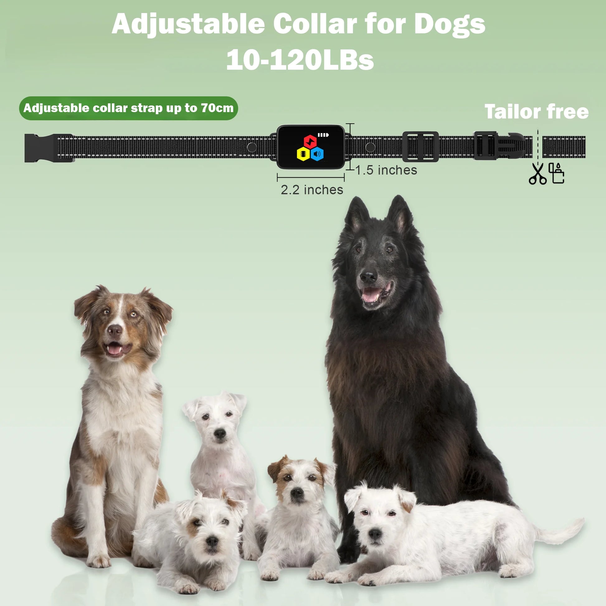 - 【IP67 Waterproof dog collars & Security Lock】 Equipped with a high-grade waterproof material, the IP67 waterproof collar is convenient for dogs playing around a pool or in the rain freely, ensure you train your dog in the rain, go camping, go to the beach, and even surf(Tips: NOT for REMOTE). Whether it's raining or in a damp environment, you can confidently use the dog anti-bark trainer collar for 8-120 Lbs (Adjustable Size:8‘’-28‘’). Instant response security on/off switch button allows you to carry it without any fear of accidental touch.